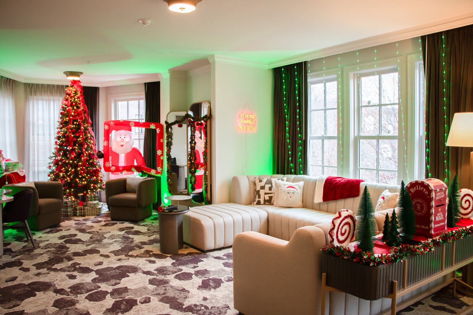 BOOK NOWStep into everything you love about the holidays from twinkling lights, decorated trees, and wrapped presents tucked into every corner. Festive décor fills the space with cheer, making it feel like you are a part of Santa’s village.